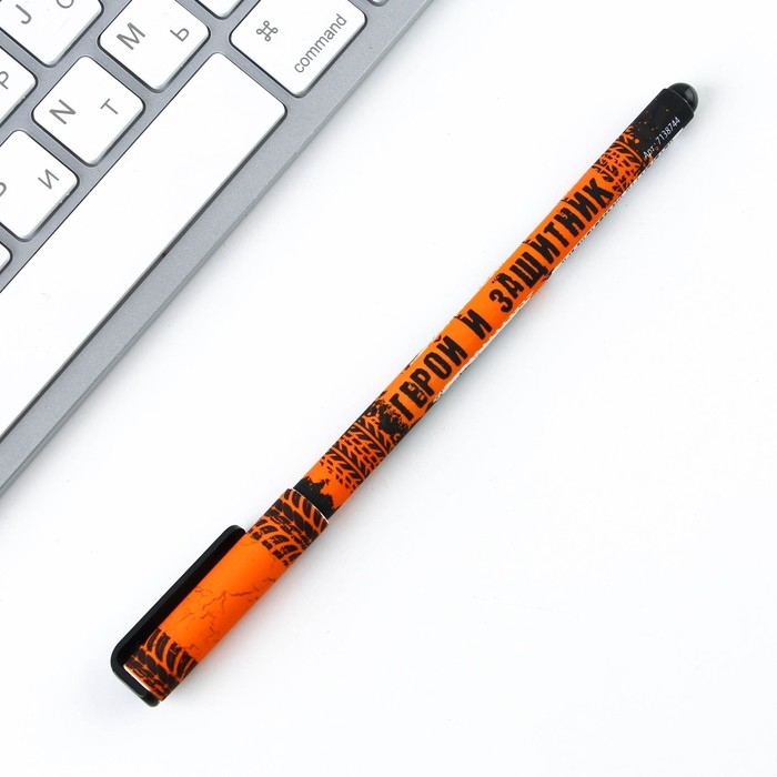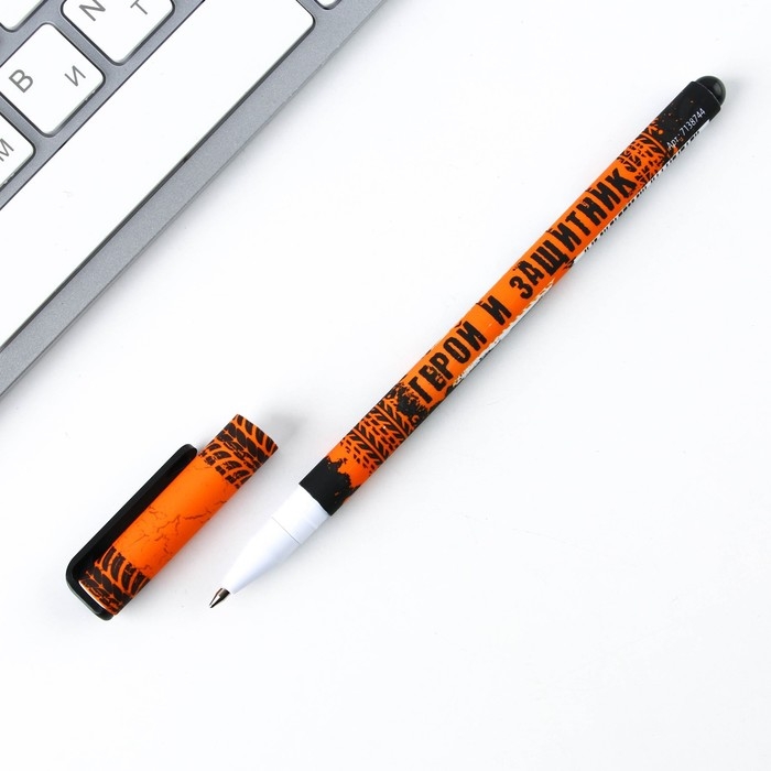 Ручка шариковая синяя паста 0.7 мм с колпачком «С праздником! 23.02» пластик софт-тач