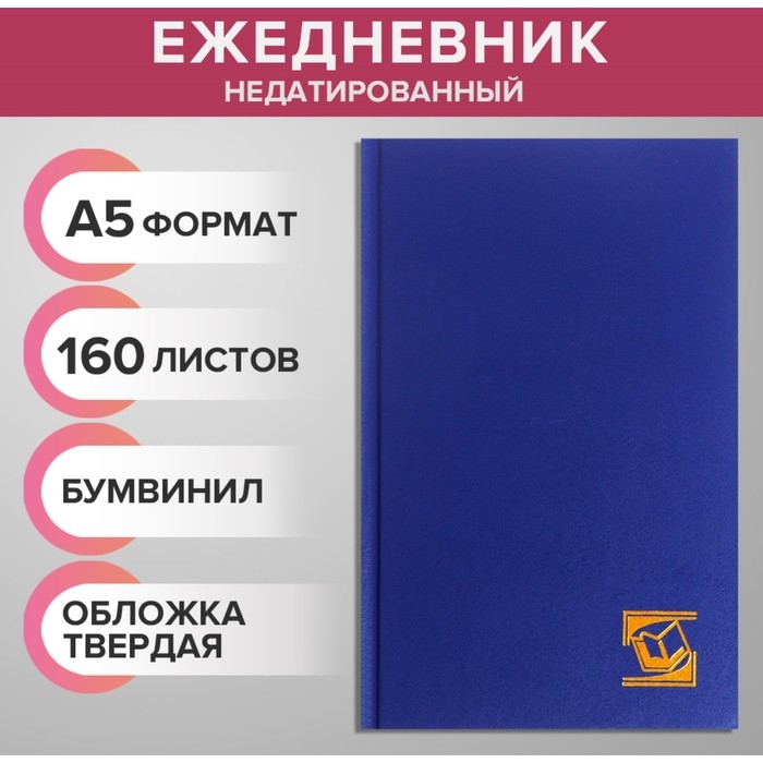 Ежедневник недатированный А5, 160 листов, обложка бумвинил, синий