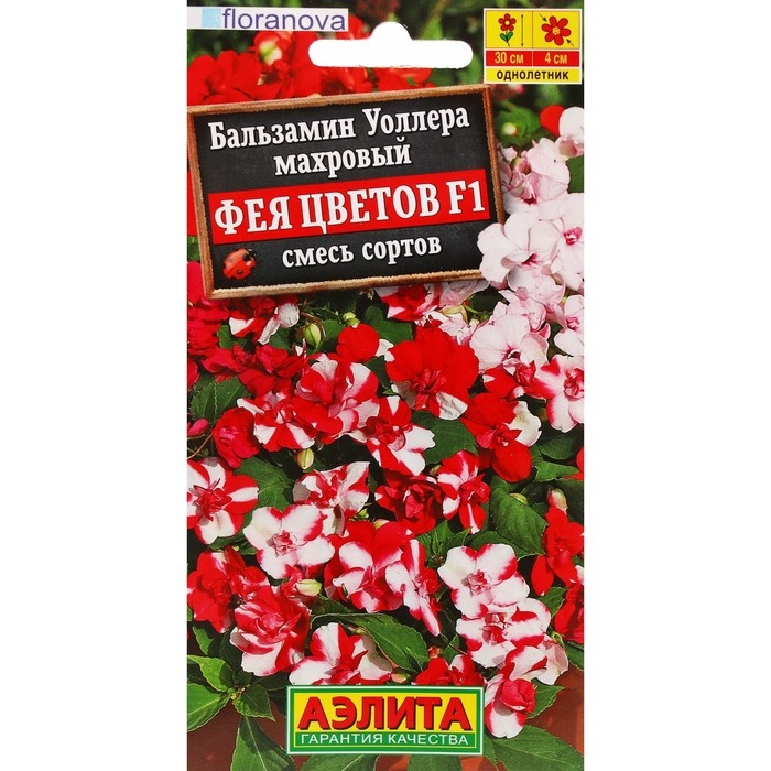 Популярное комнатное растение и садовый летник. Гибриды ФЕЯ ЦВЕТОВ F1 имеют эффектные махровые цветки диаметром 4 см, напоминающие бутоны роз. Обильное цветение начинается уже через 6 недель после всходов и продолжается все лето. Растения крепкие, 30 см высотой, с прекрасной формой куста, хорошо смотрятся в балконных ящиках, уличных контейнерах, на клумбах. Нетребовательны к освещению, посадки можно размещать в полутенистых местах. Бальзамин теплолюбив, влаголюбив (но не переносит избыточного увлажнения), требует легких плодородных почв и защиты от ветра.