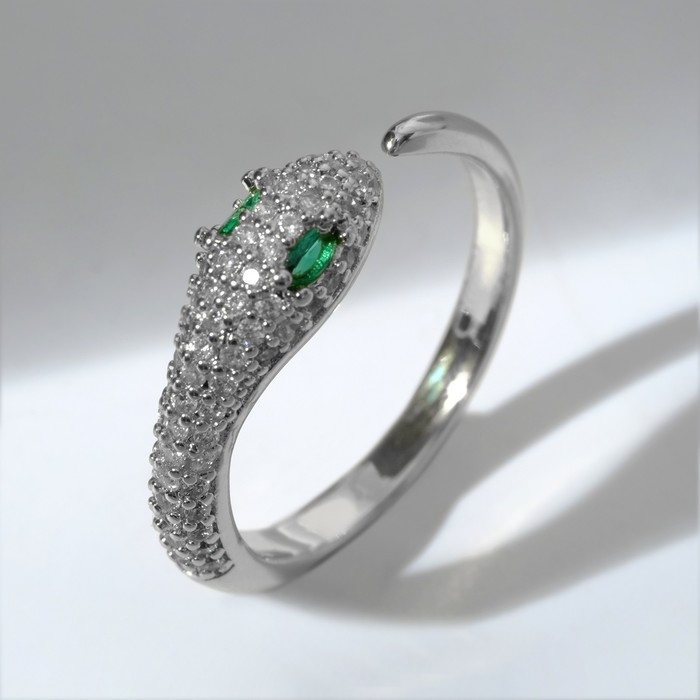 Новый год! Символ года 2025! Кольцо «Змейка» маленькая, цвет бело-зелёный в серебре, безразмерное