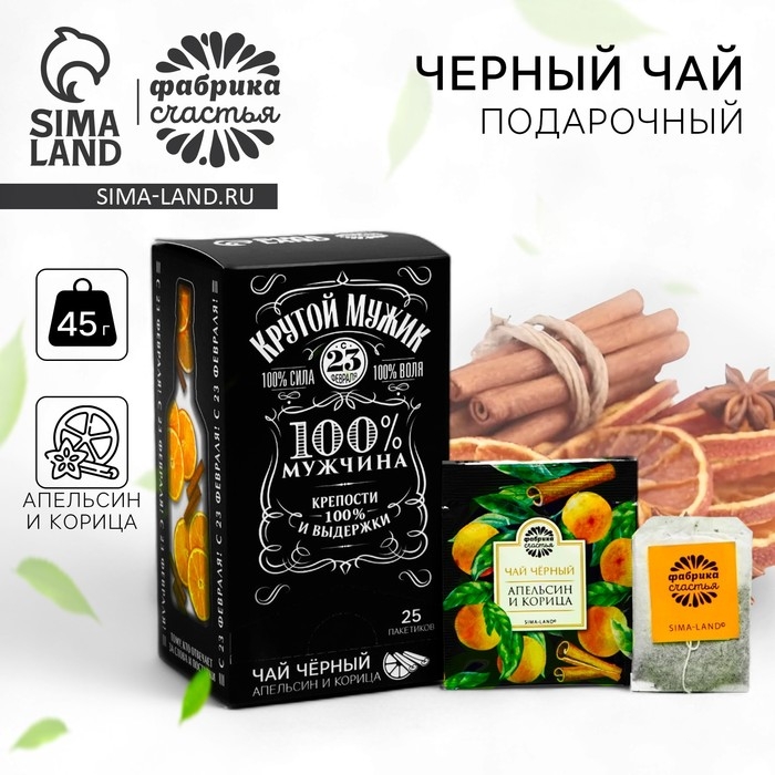 Чай чёрный «Крутой мужик»: апельсин и корица, 25 пакетиков х 1,8 г. (18+)