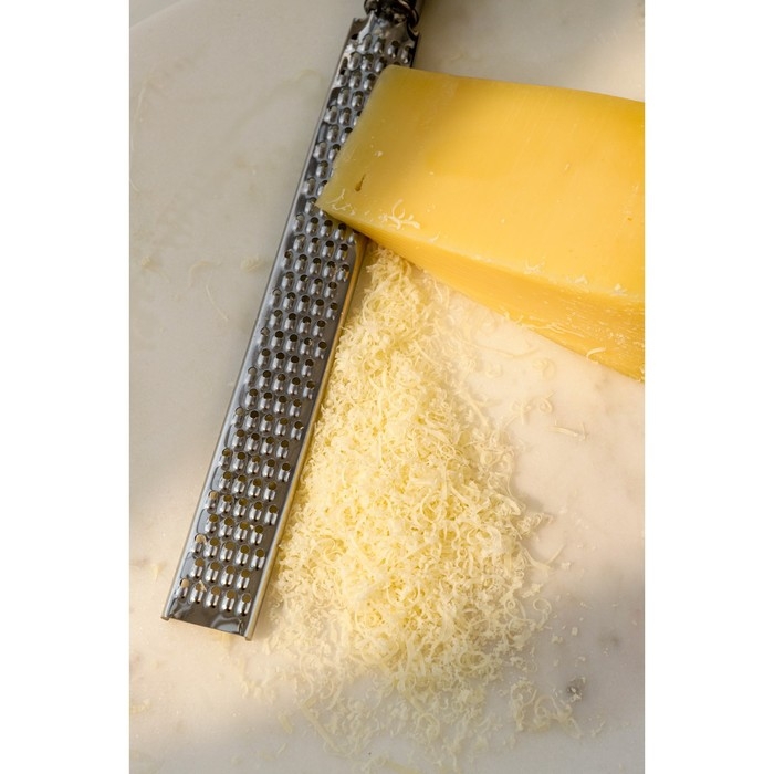 - Плоская терка идеально подходит для сыра, в том числе и мягкого.
