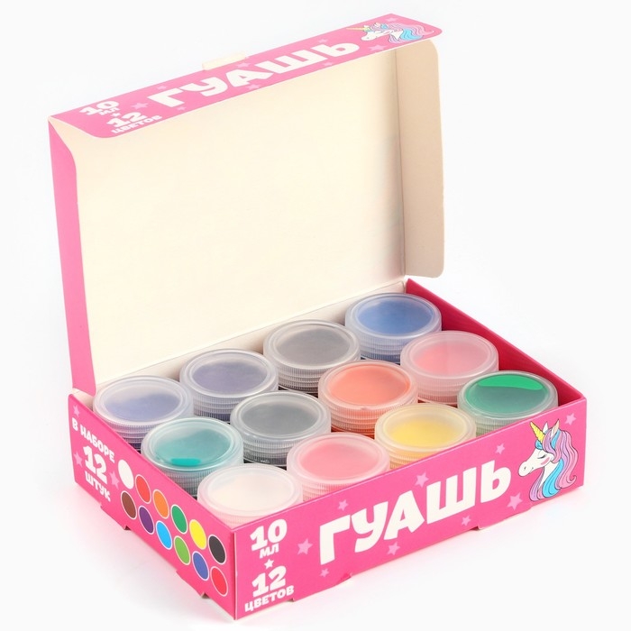 Гуашь 12 цветов по 10 мл «Единорог», Минни Маус