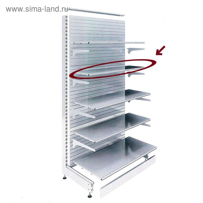 Полка имеет перфорацию по двум сторонам, что позволяет устанавливать делители. Стеллажная полка выдерживает равномерно распределённую нагрузку 80 кг. Для установки полки требуется кронштейн.
