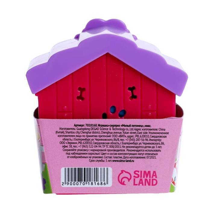 Игрушка-сюрприз «Милый питомец» — это не просто набор, а целая история. В комплект уходит уютная будка, которая станет домиком для вашего нового питомца. А какой именно питомец окажется внутри — настоящий сюрприз! Комплект дополнен миской для кормления и набором наклеек, чтобы ваш ребёнок мог украсить домик по своему вкусу.