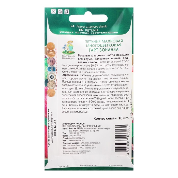 Семена цветов Петуния махровая многоцветковая "Тарт Бонанза", 10 шт.