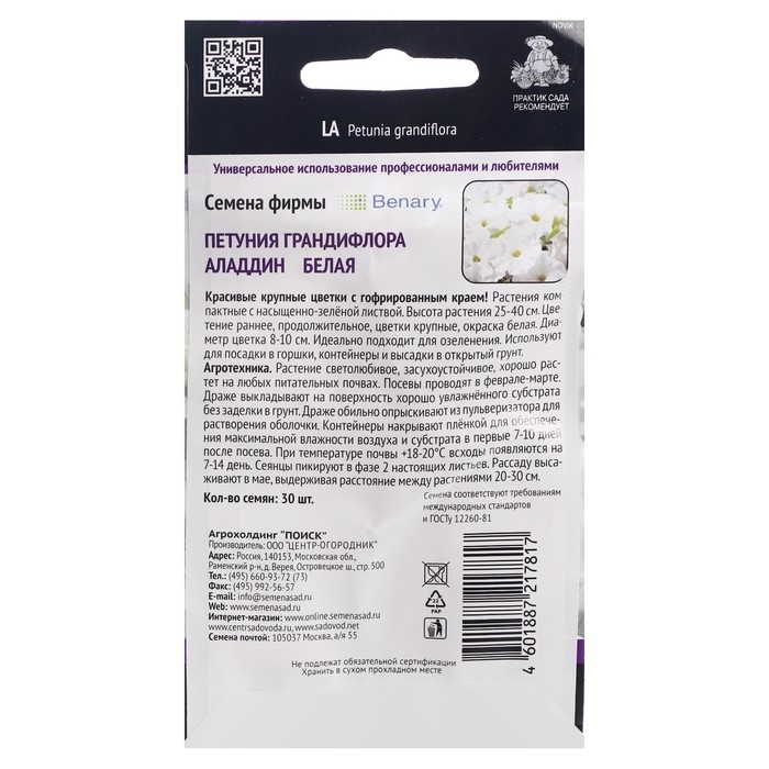 Семена цветов Петуния грандифлора "Аладдин Белая", 30 шт.