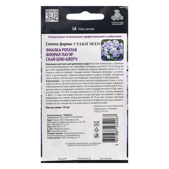 Семена цветов Фиалка "Флорал Пауэр Скай Блю Блотч", 10 шт