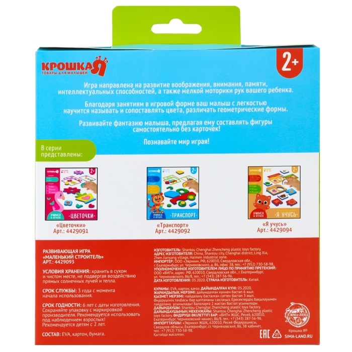 Детская развивающая игра EVA «Маленький строитель», изучение форм / цветов, Крошка Я