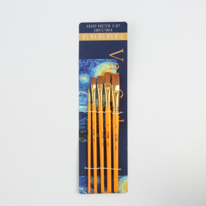 Кисть для рисования набор 5 шт. синтетика плоские № 2,4,6,8,10