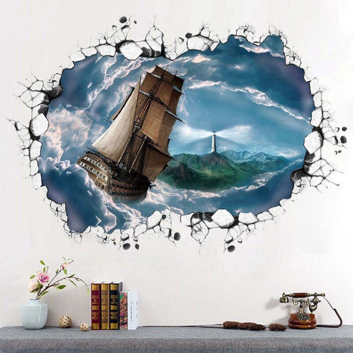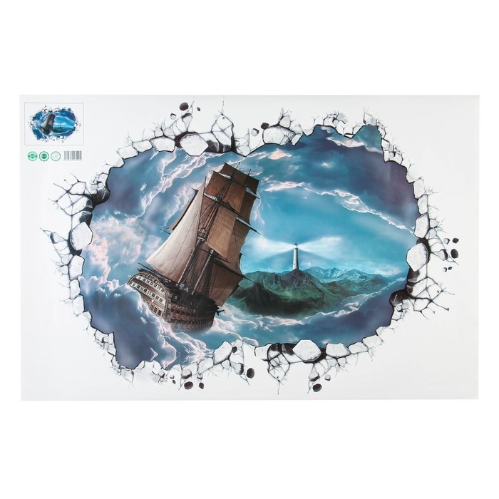 Наклейка интерьерная 3D "Корабль в шторм" на стену, 90 х 60 см, влагостойкая, ПВХ