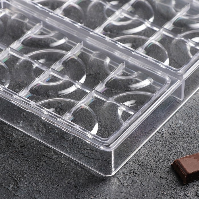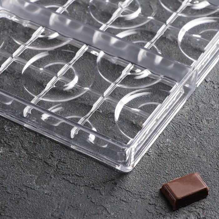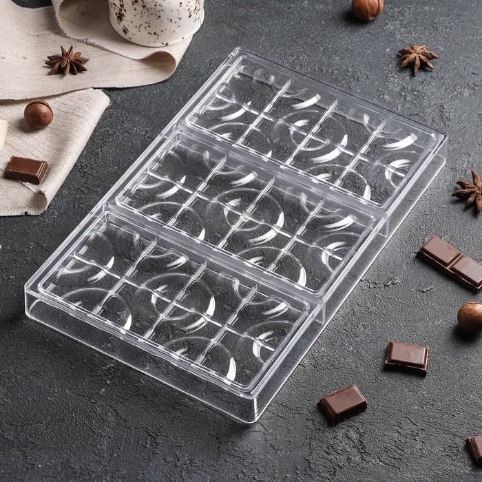 Форма для шоколада KONFINETTA «Плитка с колечками», 27,5×17,5×2,5 см, 3 ячейки 15,3×7,5х0,8 см, цвет прозрачный