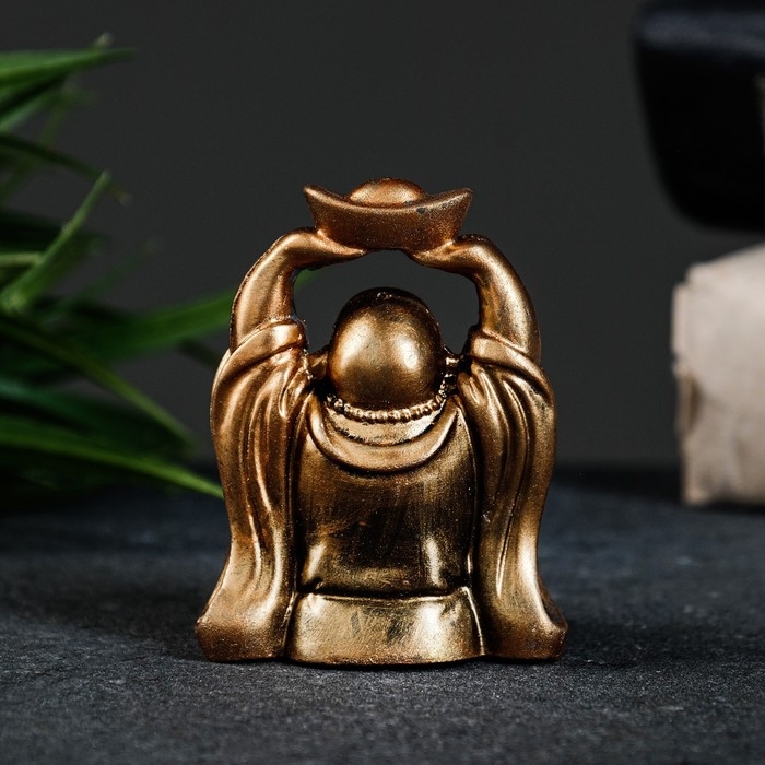 Фигура "Хотей со слитком" бронза, 7х5х4см