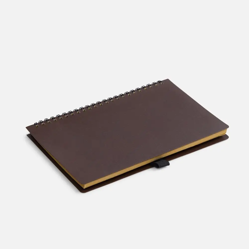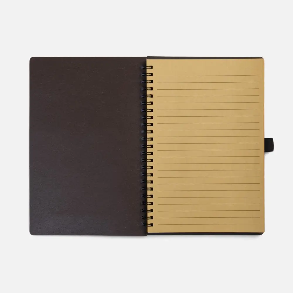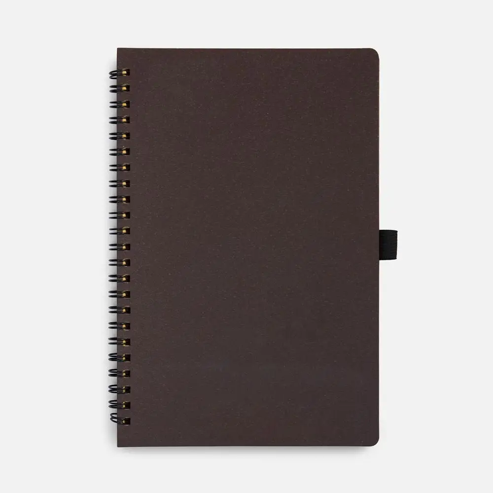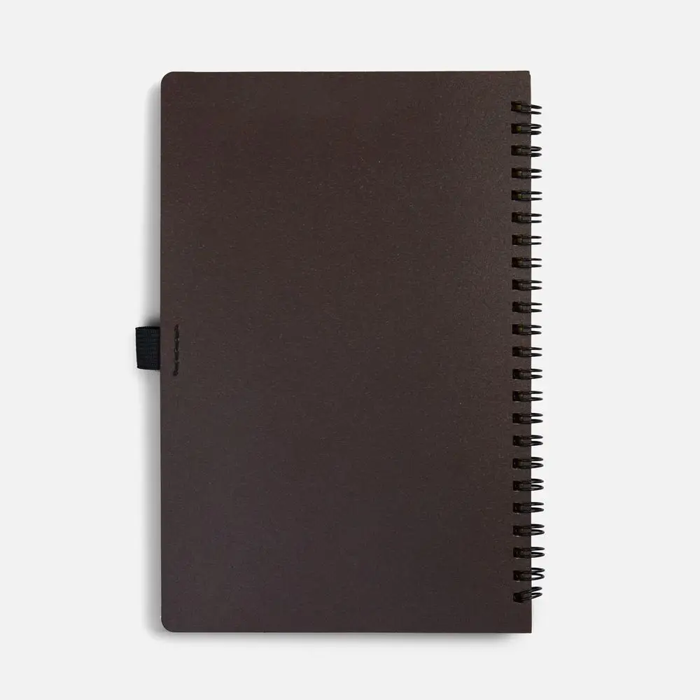 Блокнот на спирали из кофейного материала с резинкой для ручки.