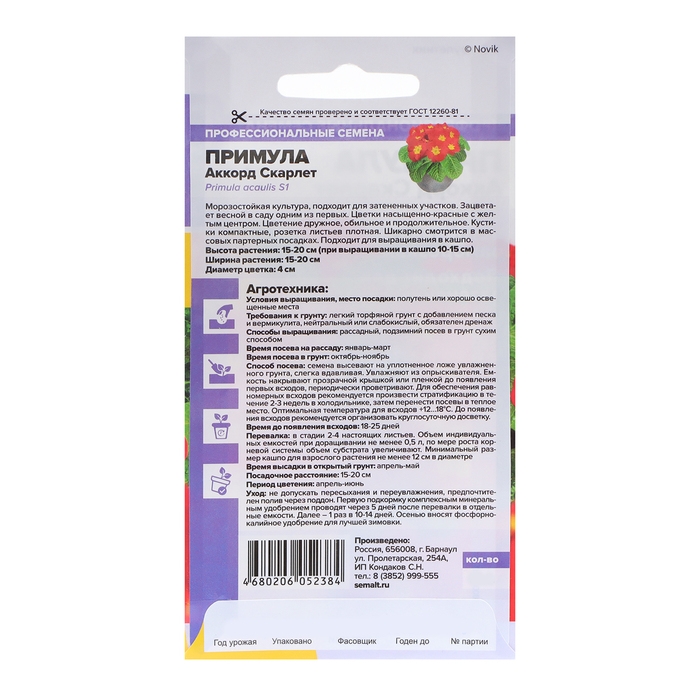 Семена цветов Примула "Аккорд", скарлет, Сем. Алт, ц/п, 5 шт