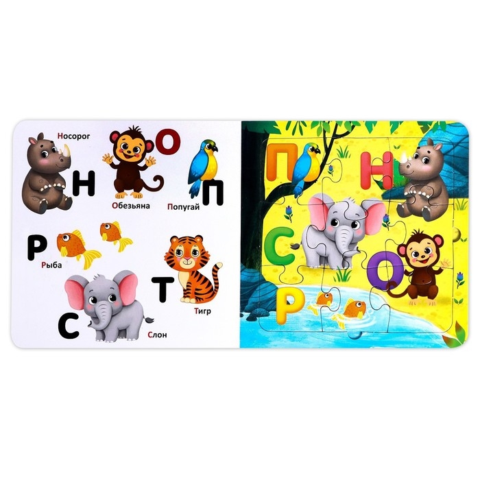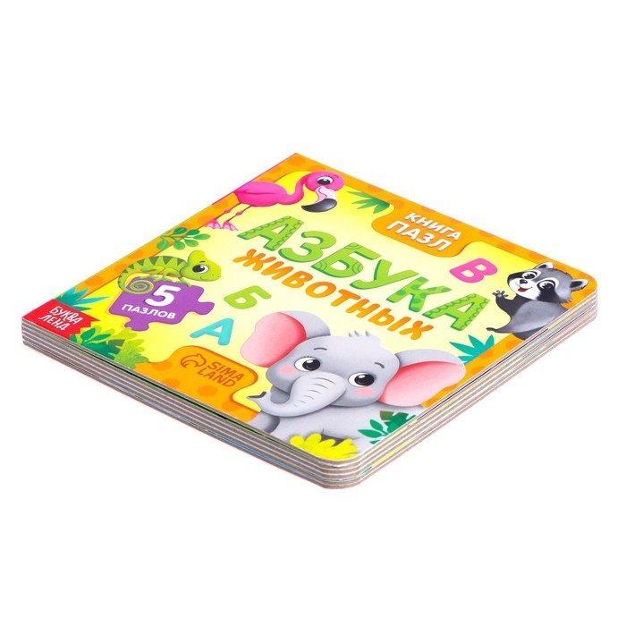 Книга картонная «Азбука животных», 12 стр., с пазлами 5 шт.