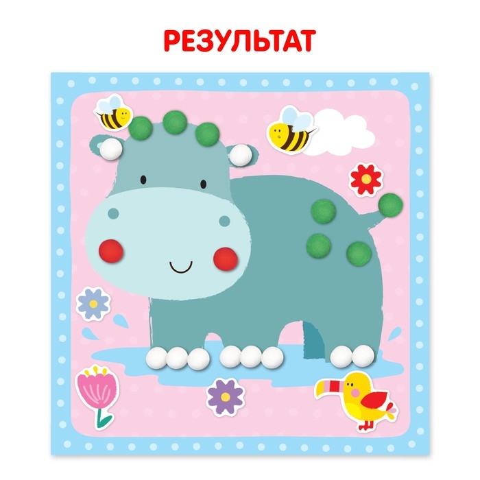 Аппликации бомбошками «Весёлые зверята», 12 стр.