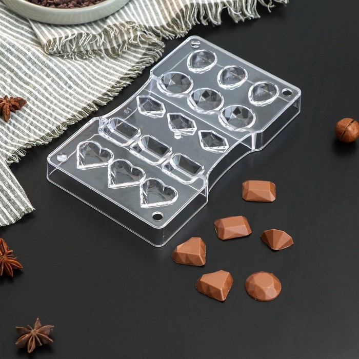 Форма для конфет и шоколада «Самоцветы», 15 ячеек, 20×12×2,5 см, цвет прозрачный