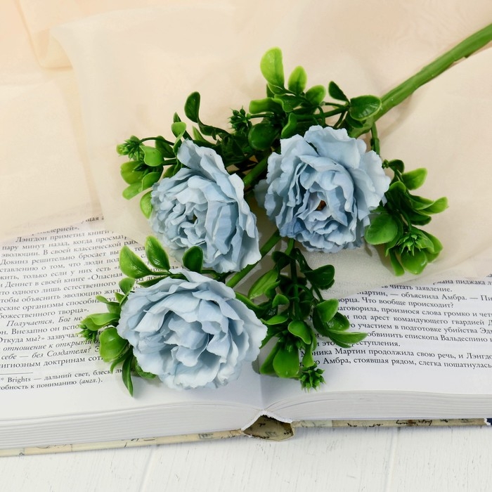 Цветы искусственные "Пион ветка" d-6 см, 36 см, голубой