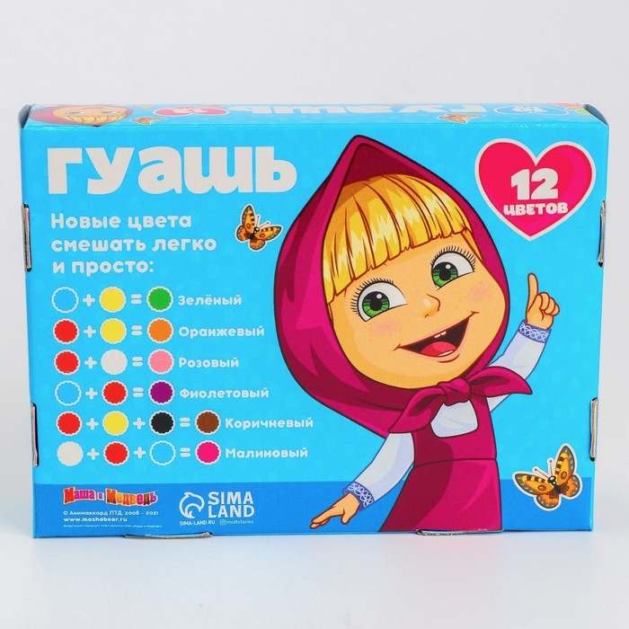 Гуашь 12 цветов по 10 мл, Маша и Медведь
