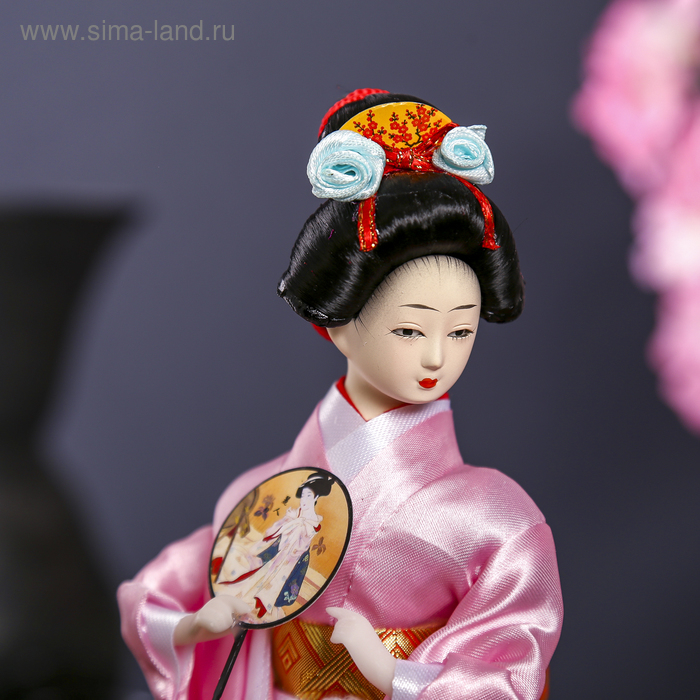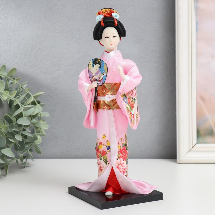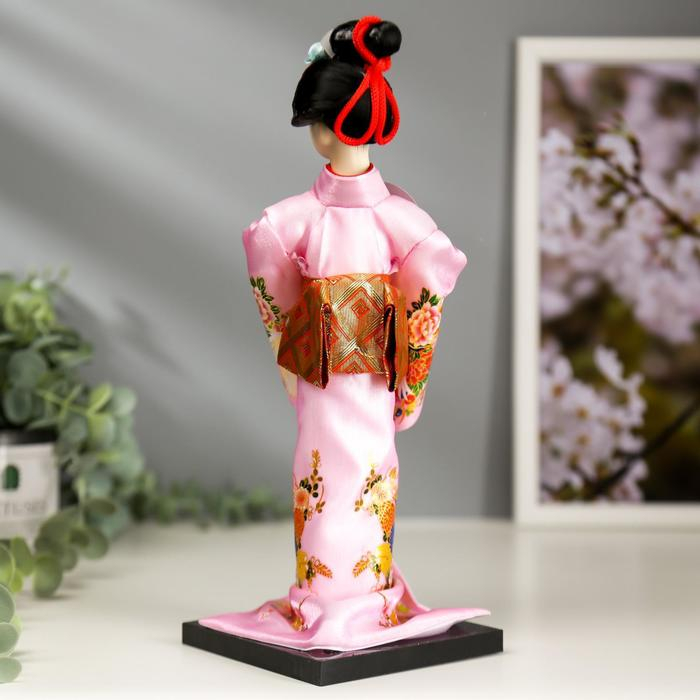 Кукла коллекционная "Японка в розовом кимоно с опахало" 25х9,5х9,5 см