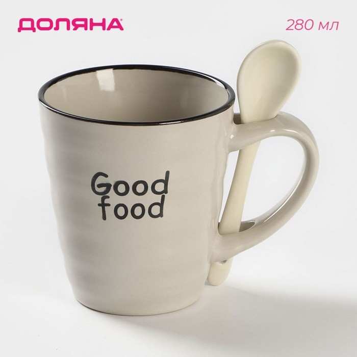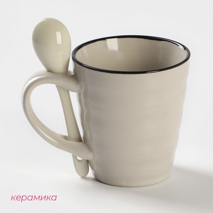 Кружка керамическая с ложкой Доляна «Ноель», 280 мл, цвет бежевый