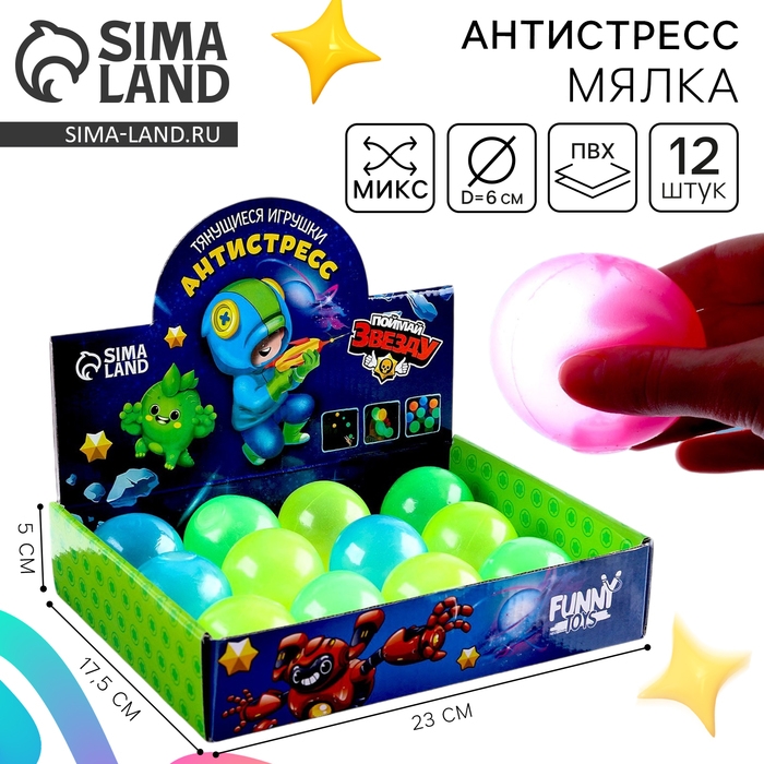 Антистресс сквиш мялка «Мяч», с воздухом, цвета МИКС, в шоубоксе