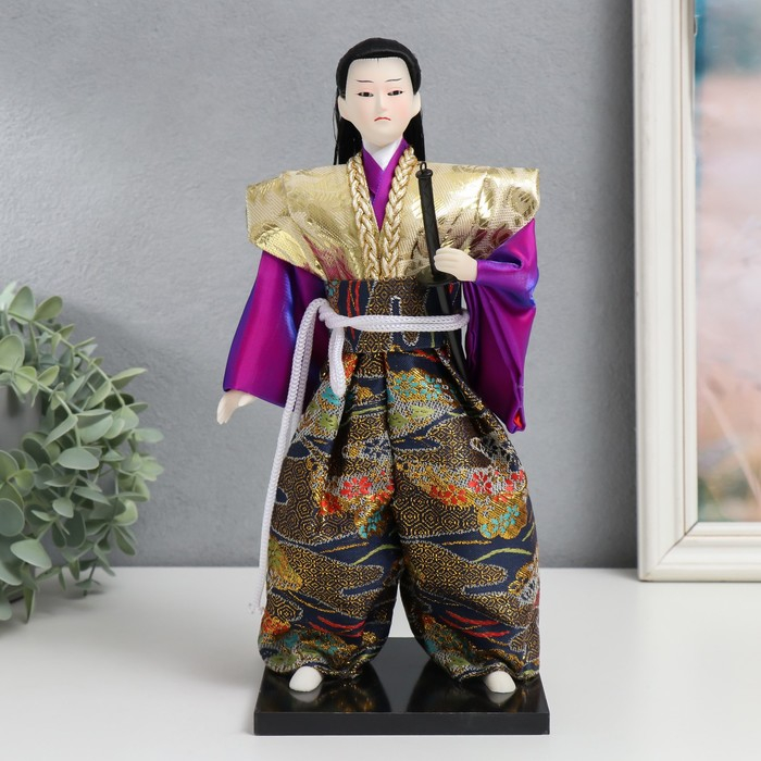 Кукла коллекционная "Самурай в золотом кимоно с мечом" 30х12,5х12,5 см