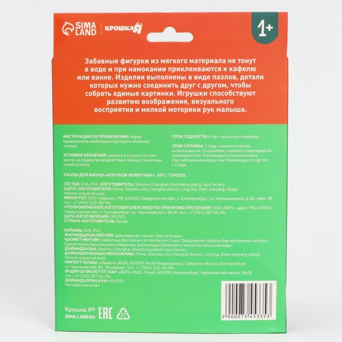 Мягкий пазл для малышей «Учим цифры: Животные», 5 пазлов, Крошка Я