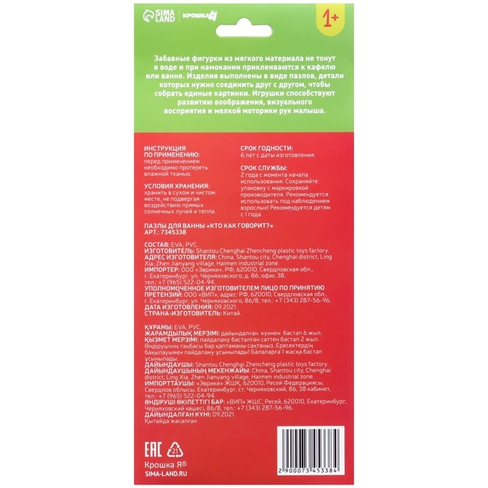 Мягкий пазл для малышей «Кто как говорит?», 8 пазлов, Крошка Я