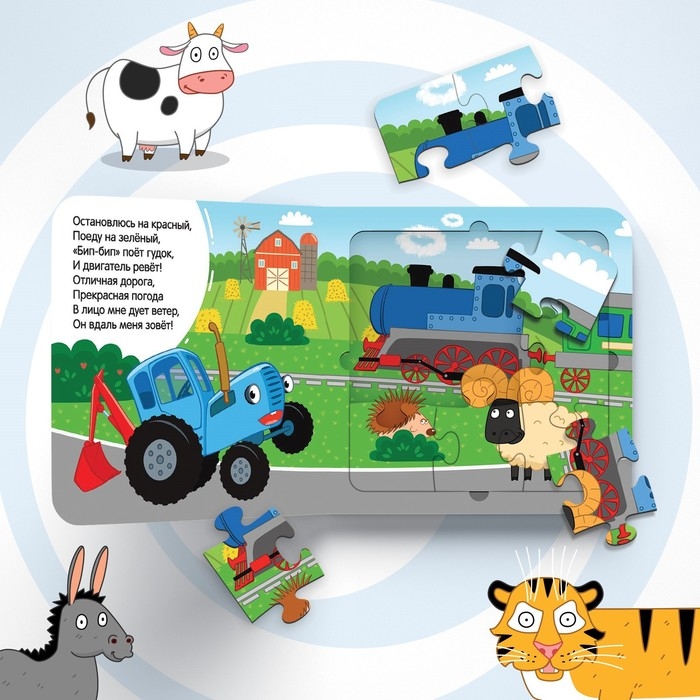 Книга картонная с пазлами «Еду, еду на машине!», «Синий Трактор», 12 стр.