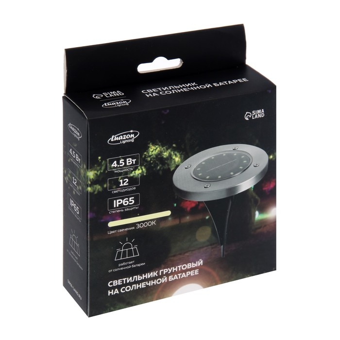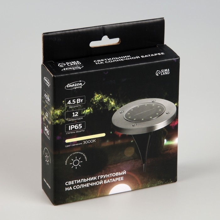 Садовый светильник на солнечной батарее, 11.5 × 13 × 11.5 см, 12 LED, свечение тёплое белое