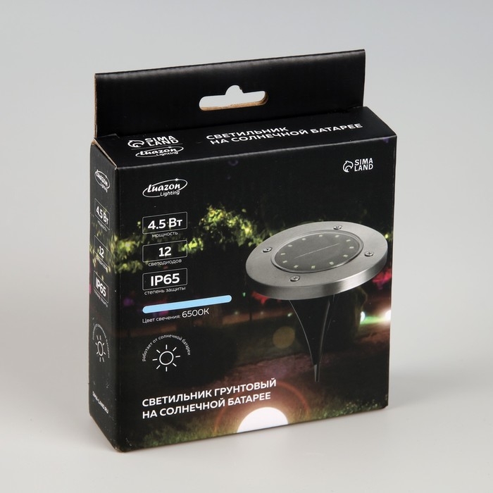 Садовый светильник на солнечной батарее, 11.5 × 13 × 11.5 см, 12 LED, свечение белое