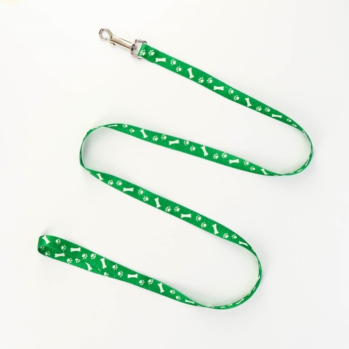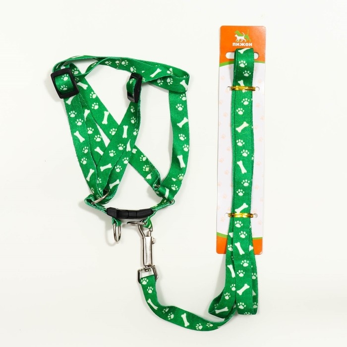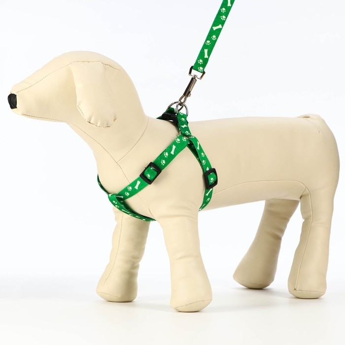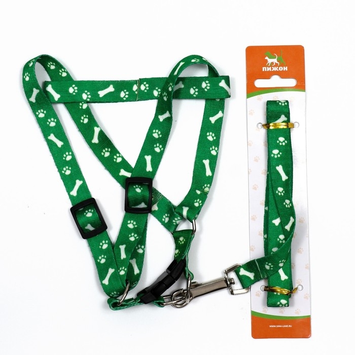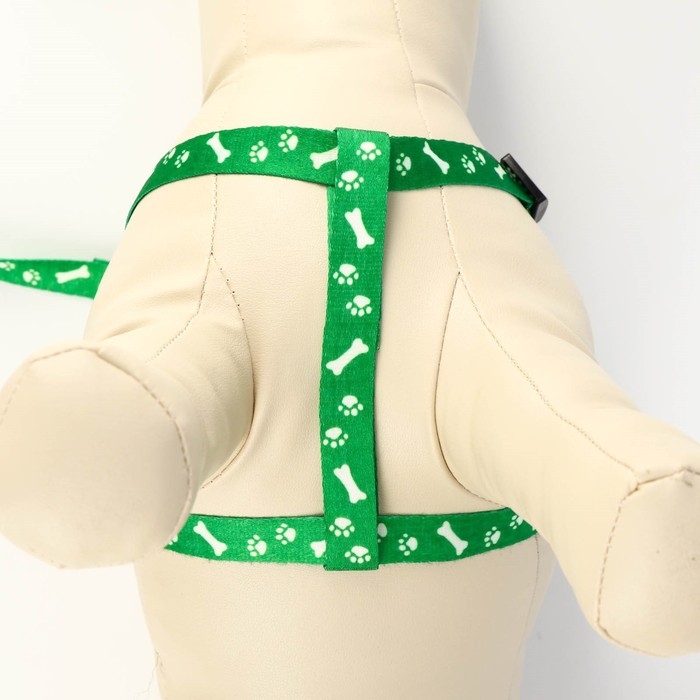 Комплект капроновый "Косточки и лапки", 1,5 см, шлейка 30-44 см, поводок 120 см, зелёный