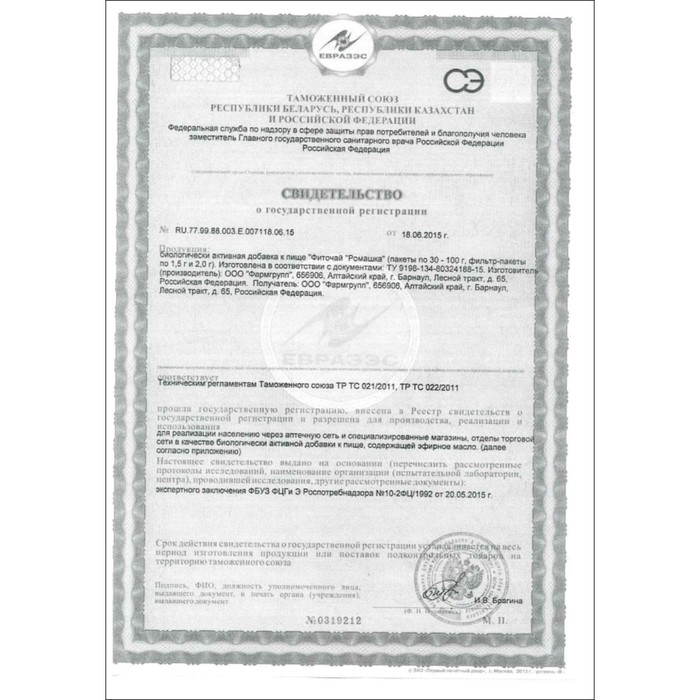 Состав: ромашка аптечная (цветки).