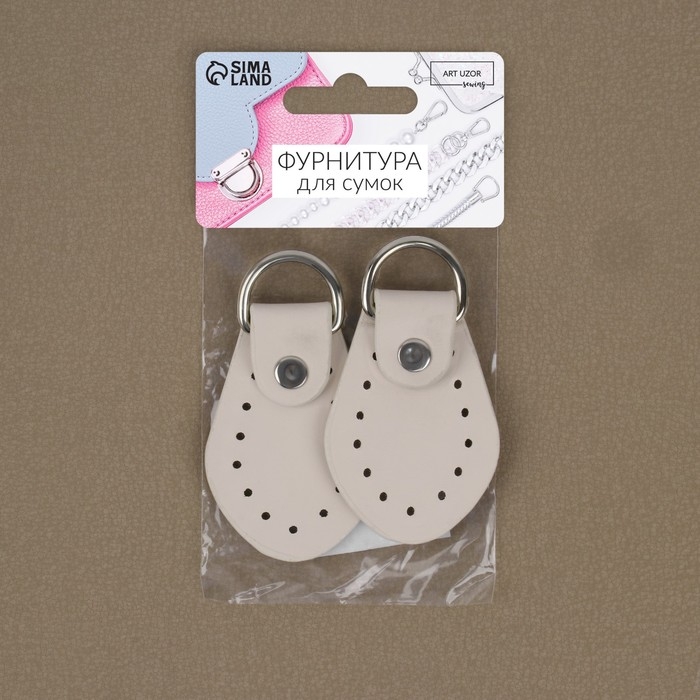 Петля пришивная для сумки, с полукольцом, пара, 7,5 × 4 см, цвет молочный/серебряный