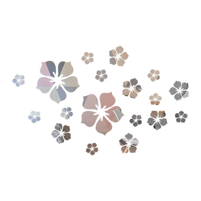 Наклейки интерьерные "Цветы", зеркальные, декор на стену, набор 18 шт, 15 7.5 4.5 см