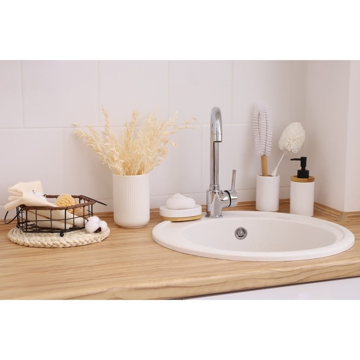 Ёрш для посуды Доляна Meli, 36×6 см, бамбуковая ручка, замшевая петелька