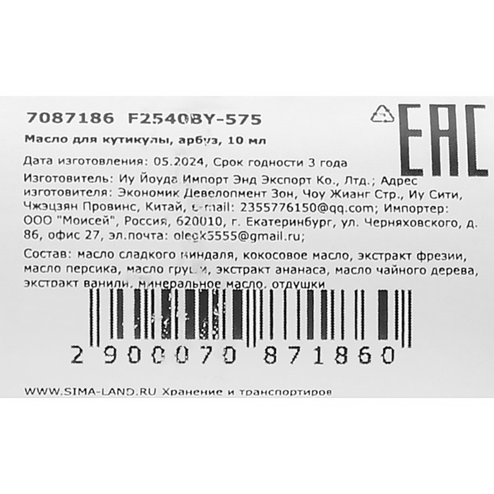 Масло для увлажнения и питания кутикулы 10 мл, арбуз