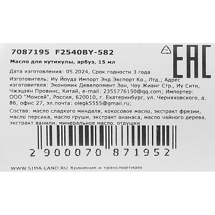Масло для увлажнения и питания кутикулы 15 мл, арбуз