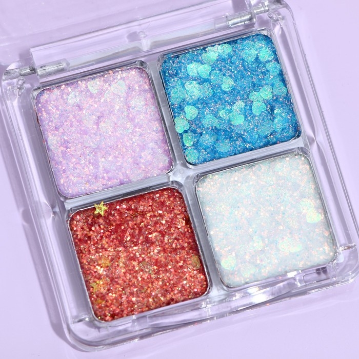 Палетка теней для век с глиттером 4 цвета