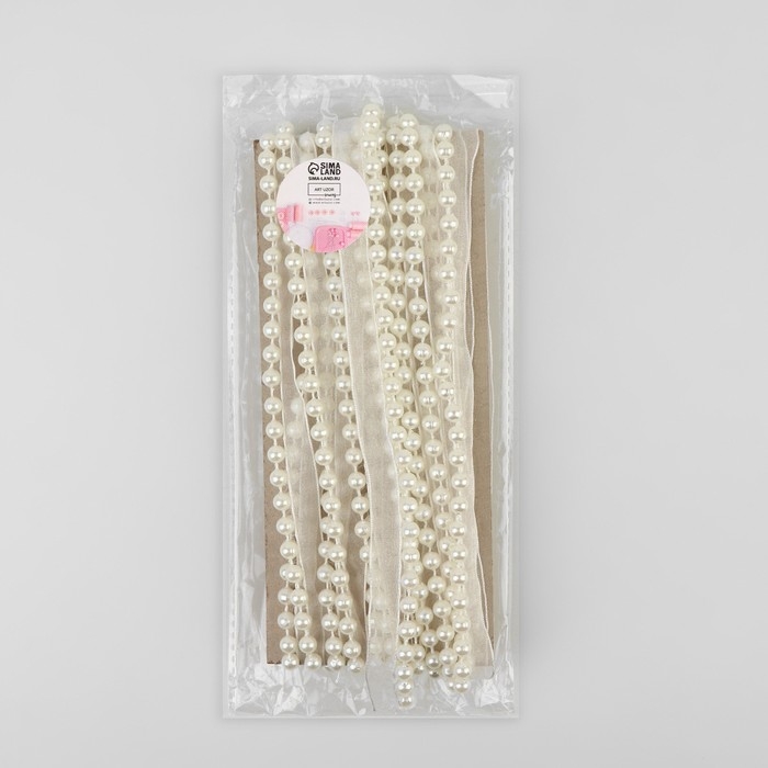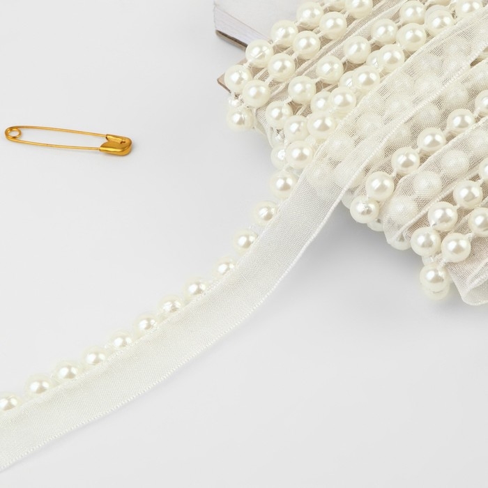 Лента декоративная с бусинами, 13 мм, 4,5 ± 0,5 м, цвет белый