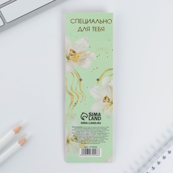 Ручка шариковая синяя паста «Цветок»,пластик, на подложке 8 марта