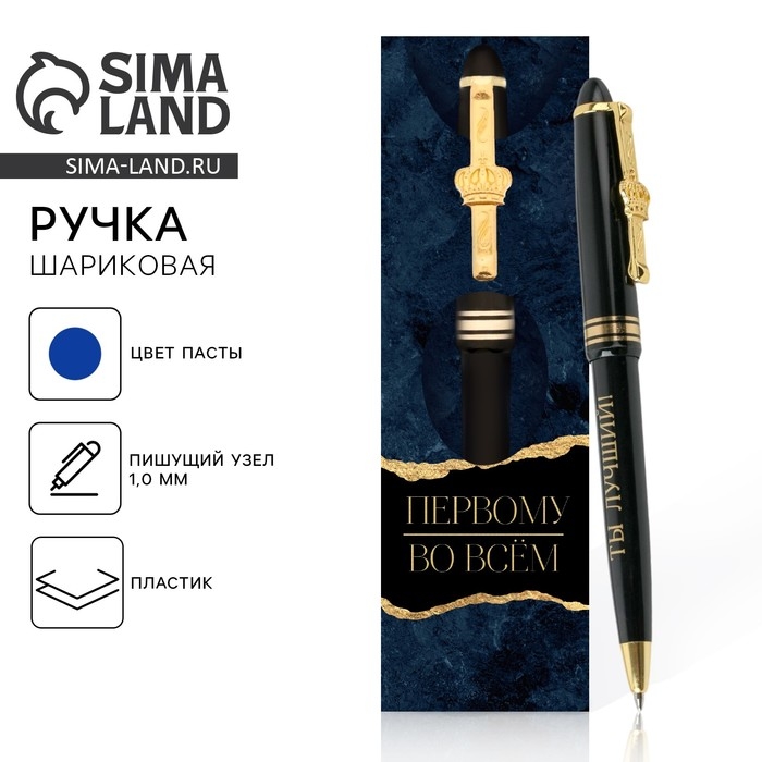 Ручка шариковая синяя паста 1.0 мм «Первому во всем» пластик, подарочная