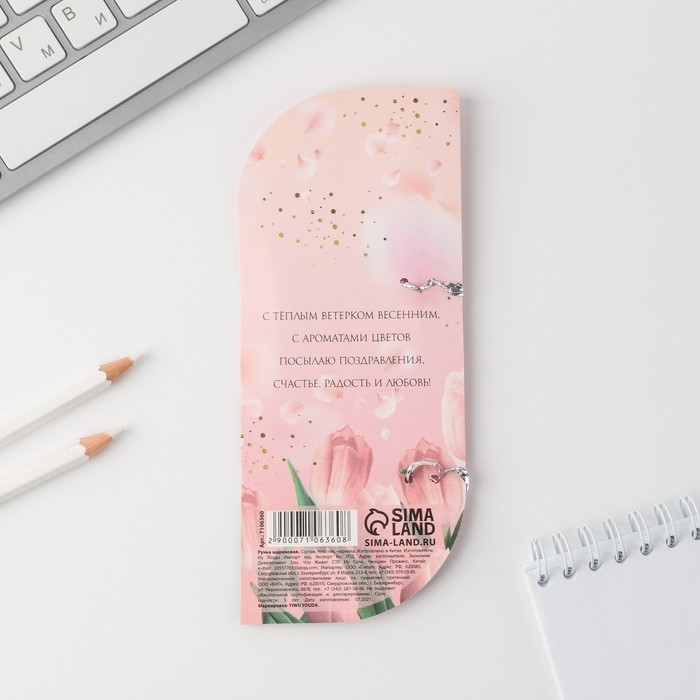 Ручка шариковая пластиковая в открытке «С 8 марта» синяя паста, 1,0 мм