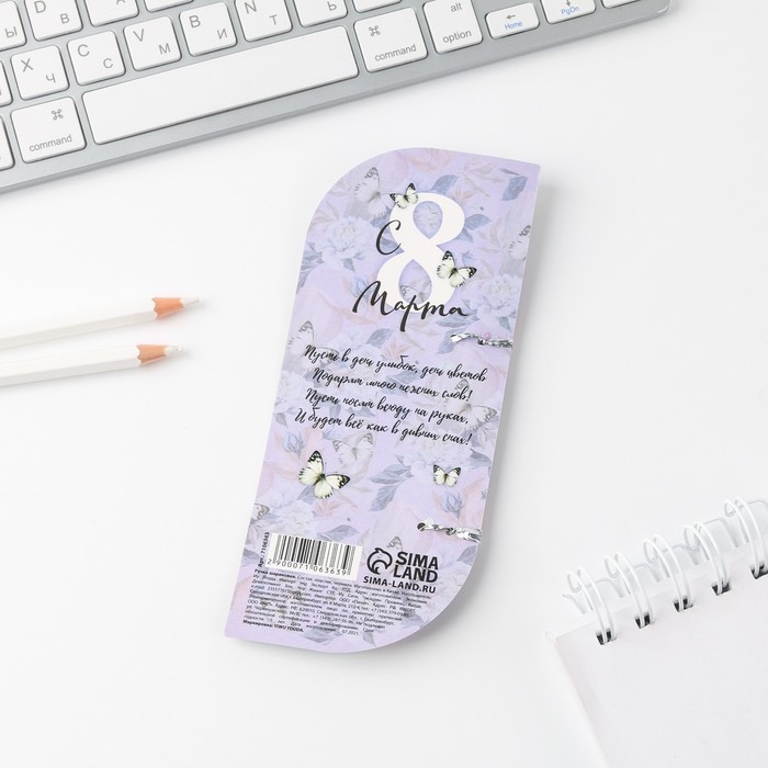 Ручка шариковая пластиковая в открытке «С 8 марта» синяя паста,1,0 мм