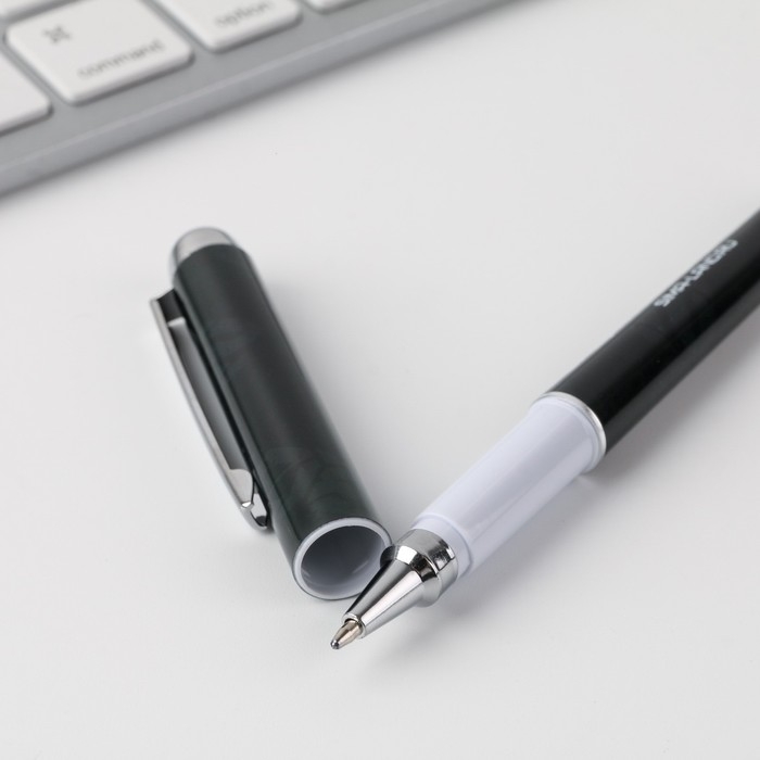 Ручка с колпачком и нанесением soft-touch «Любимому учителю», синяя паста 0.7 мм
