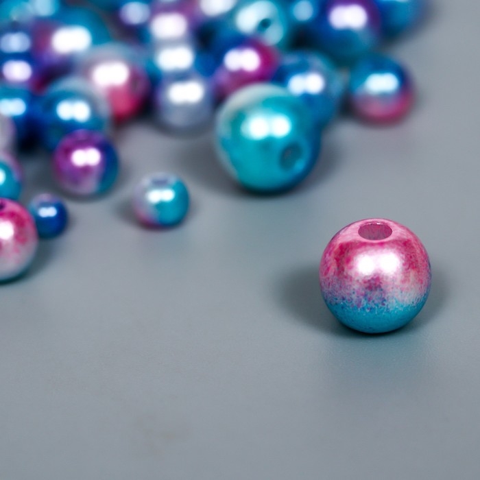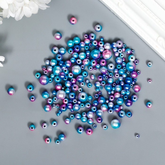 Бусины для творчества пластик "Круглые. Градиент. Русалка голубая" d=3-8 мм, набор 10 гр