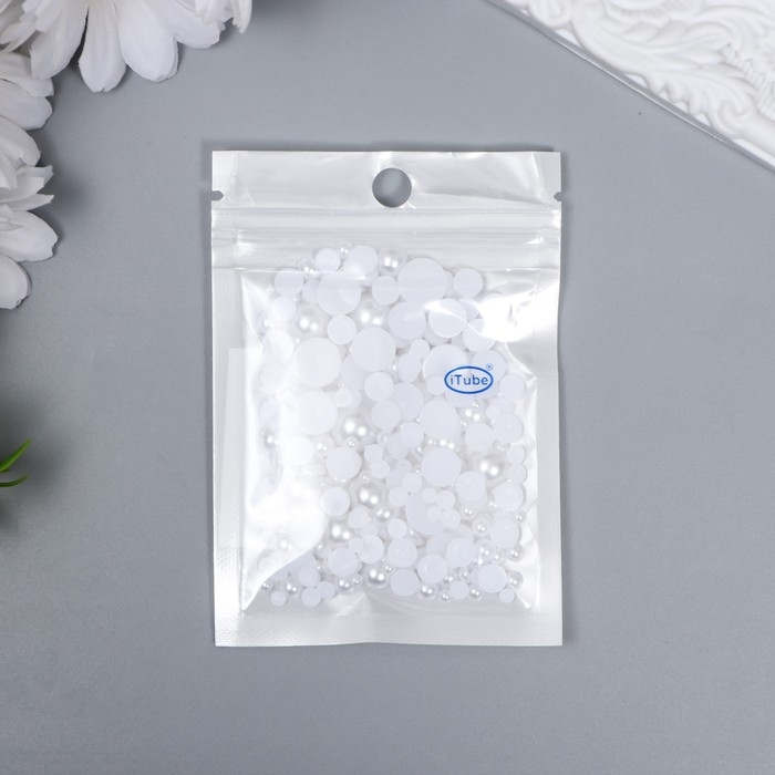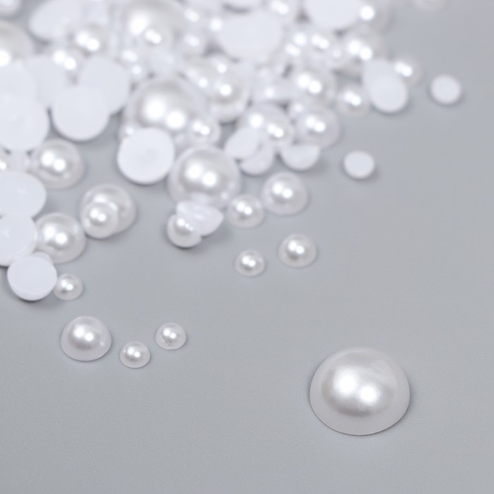 Декор для творчества пластик "Половинки бусин. Белые" d=3-10 мм, набор 10 гр