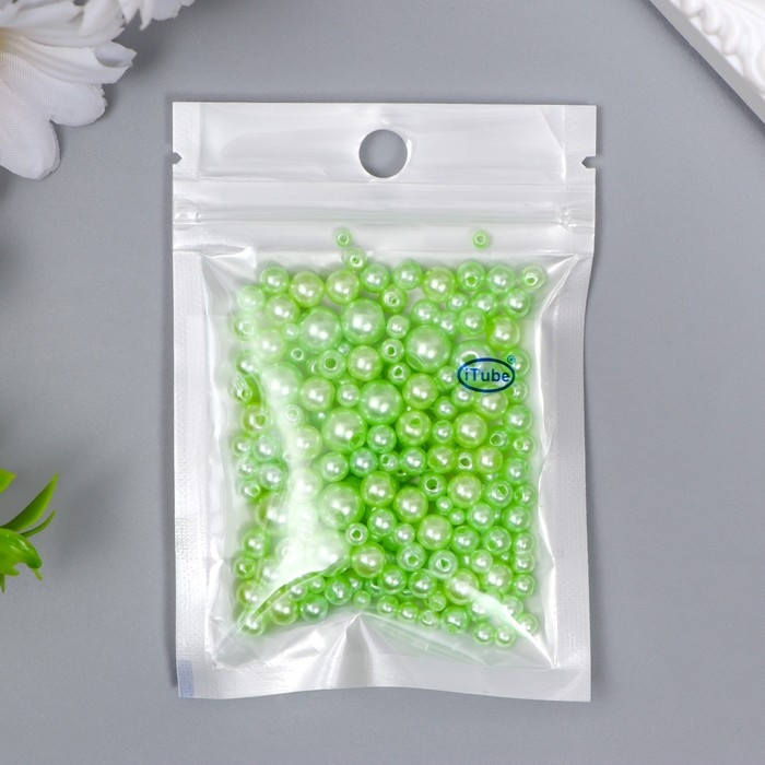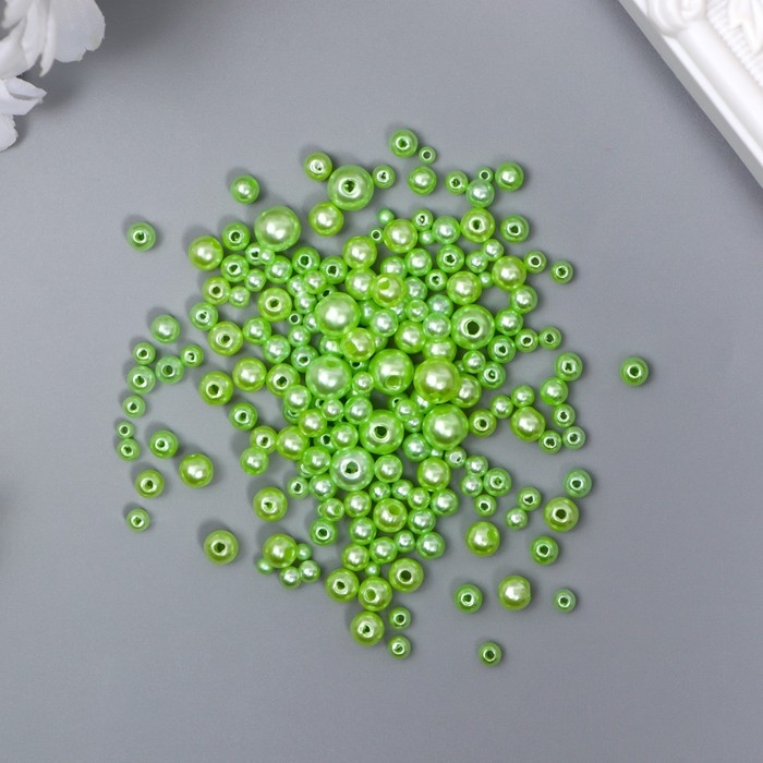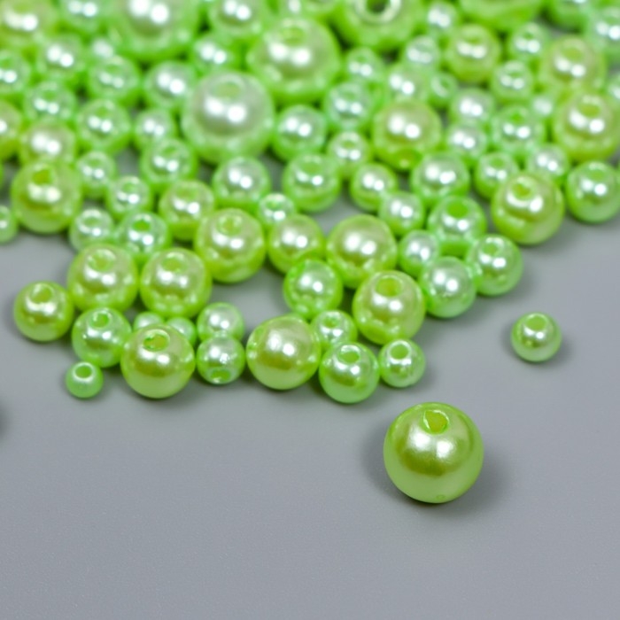 Бусины для творчества пластик "Круглые. Фисташка" d=3-8 мм, набор 10 гр